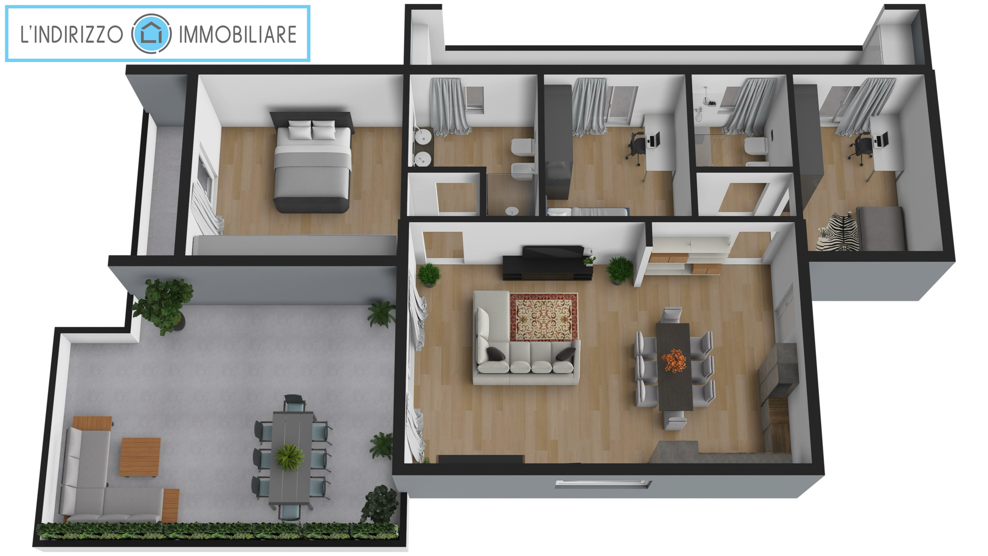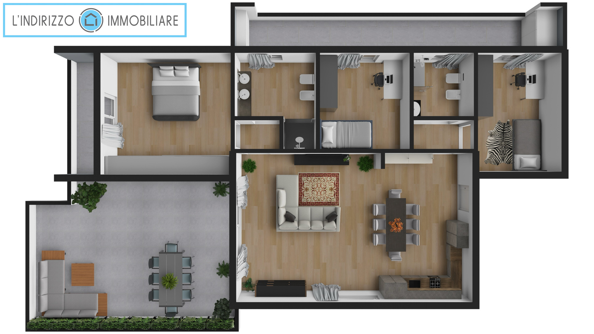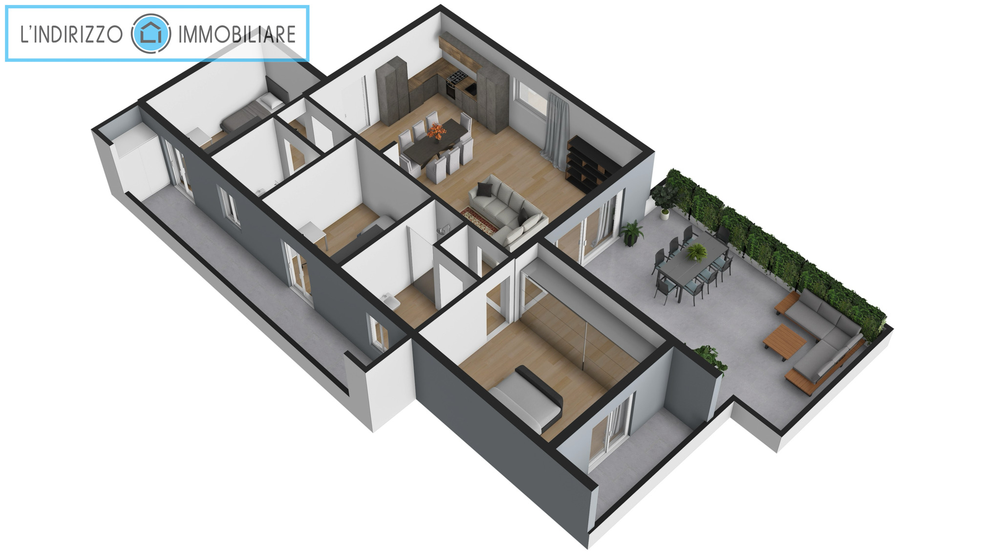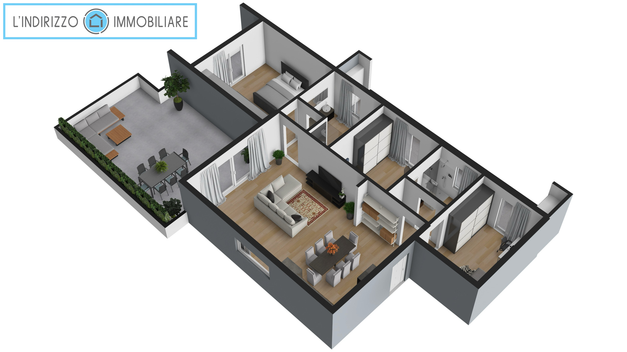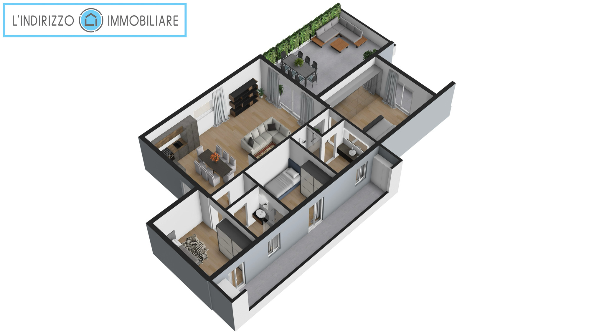 * una camera matrimoniale con poggiolo loggiato privato di 5 m² Completano la disposizione due bagni finestrati, moderni e ben rifiniti.L’ampio terrazzo abitabile di 41 m² rappresenta un vero valore aggiunto: uno spazio da vivere in ogni stagione, ideale per pranzi all’aperto o momenti di relax.