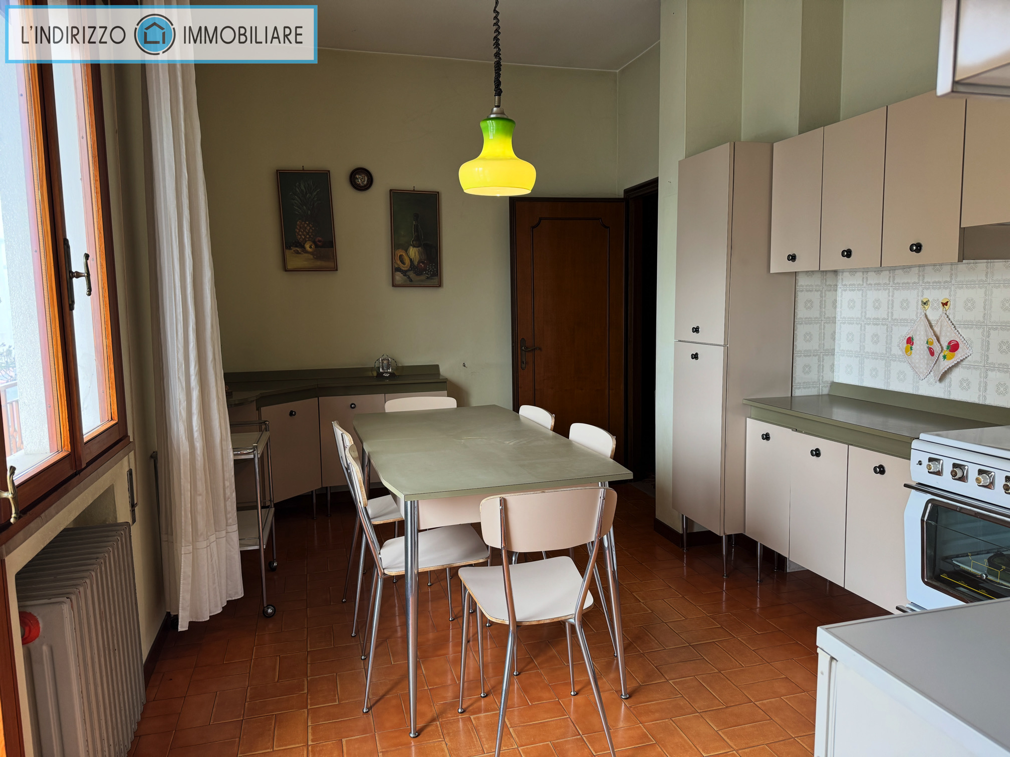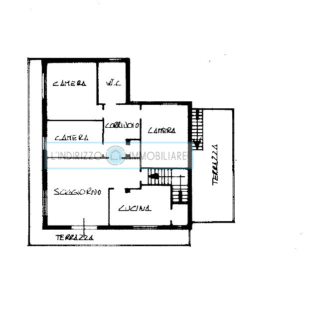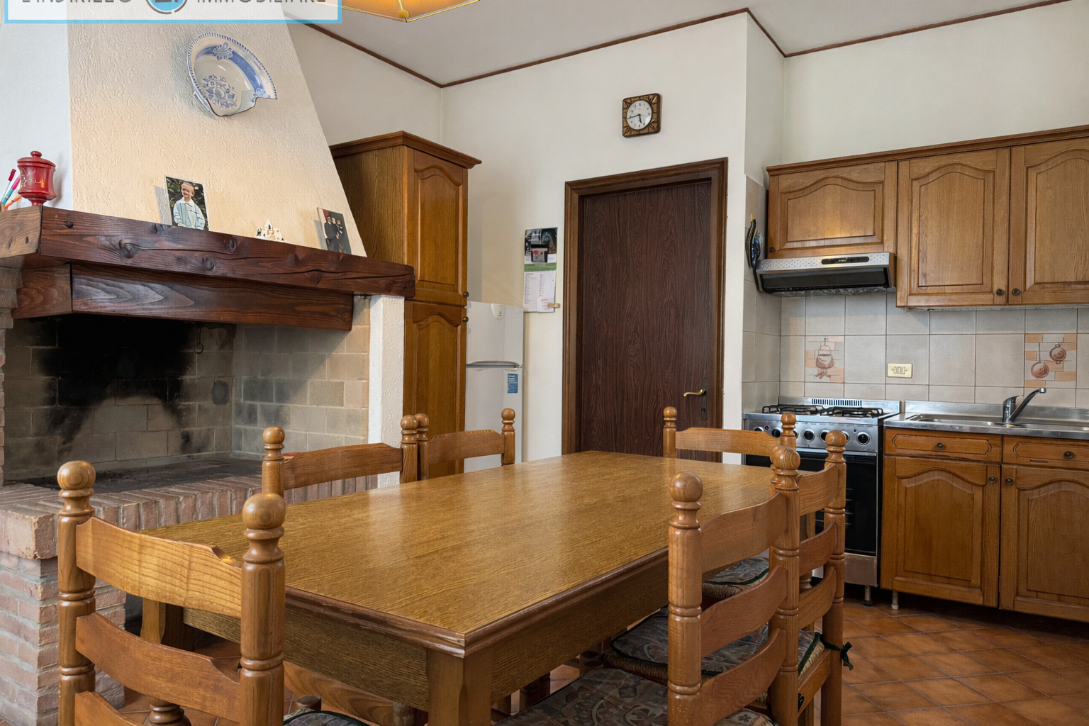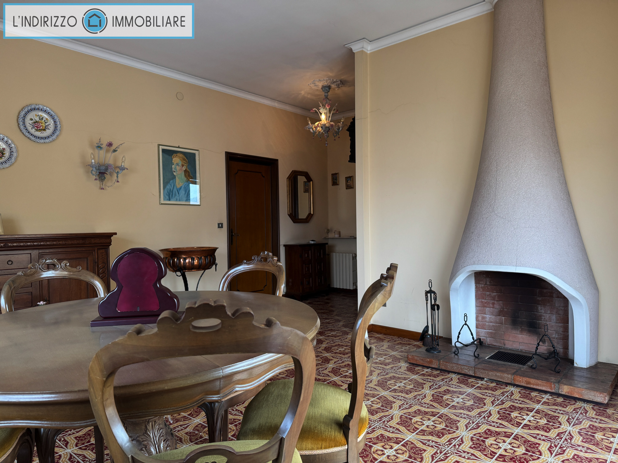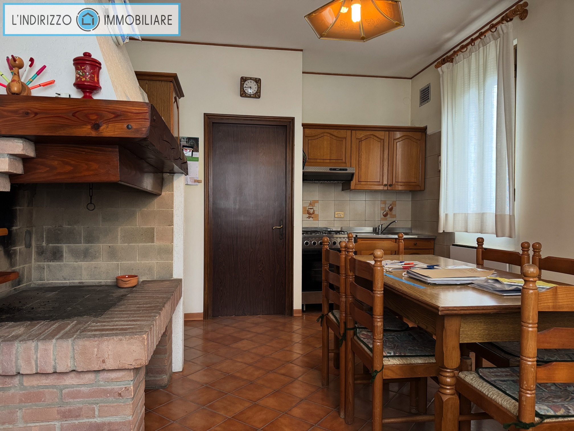 P.1°: soggiorno con caminetto, cucina abitabile e cucinino, 3 camere grandi, bagno, 2 terrazze