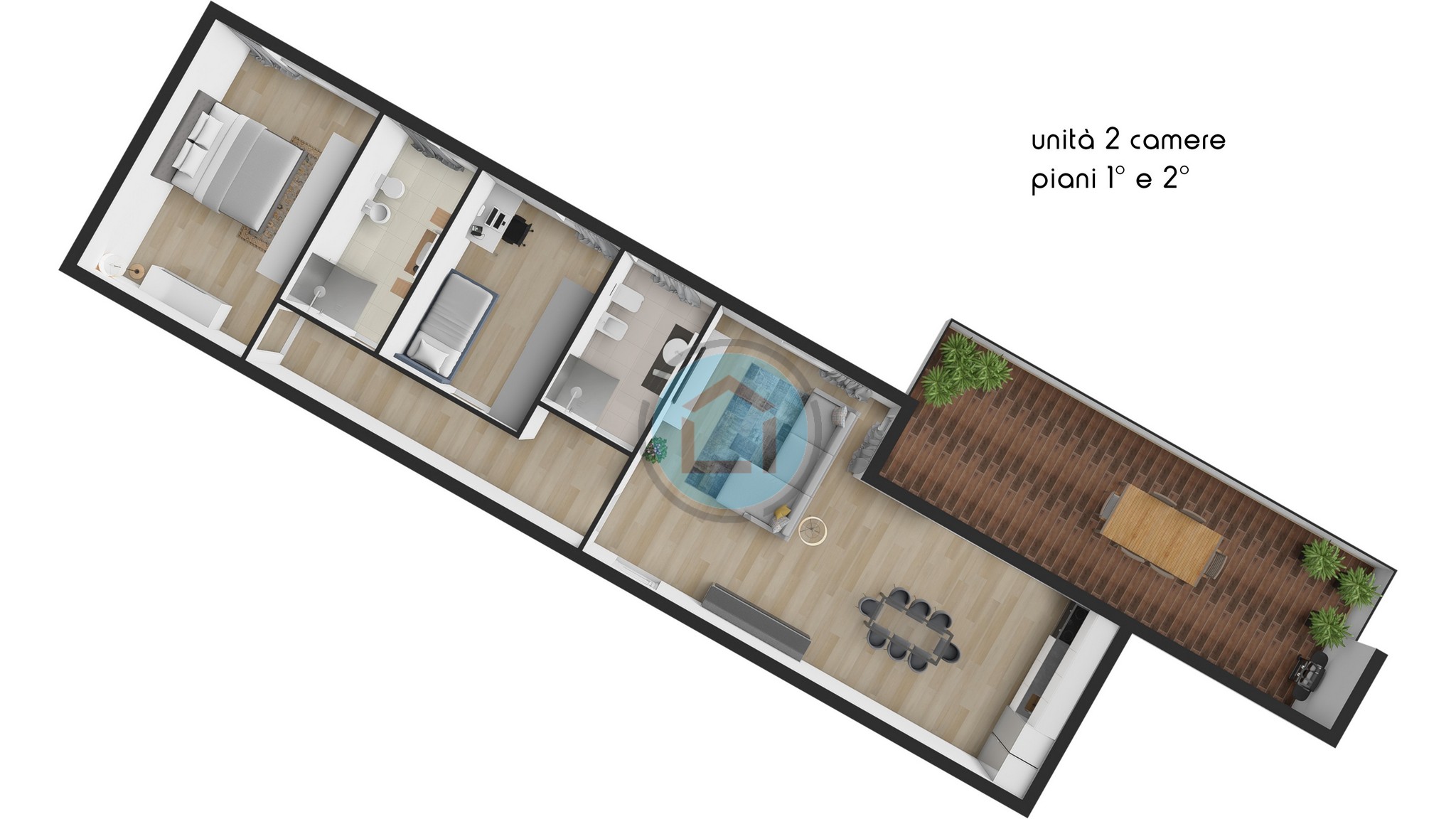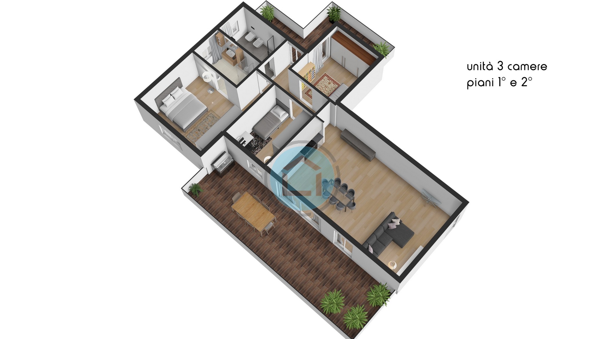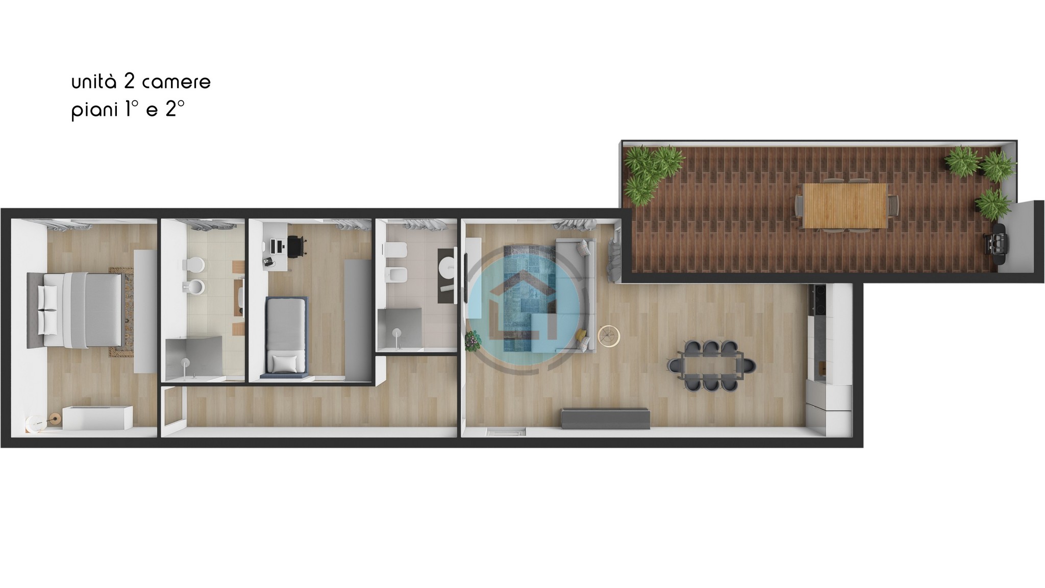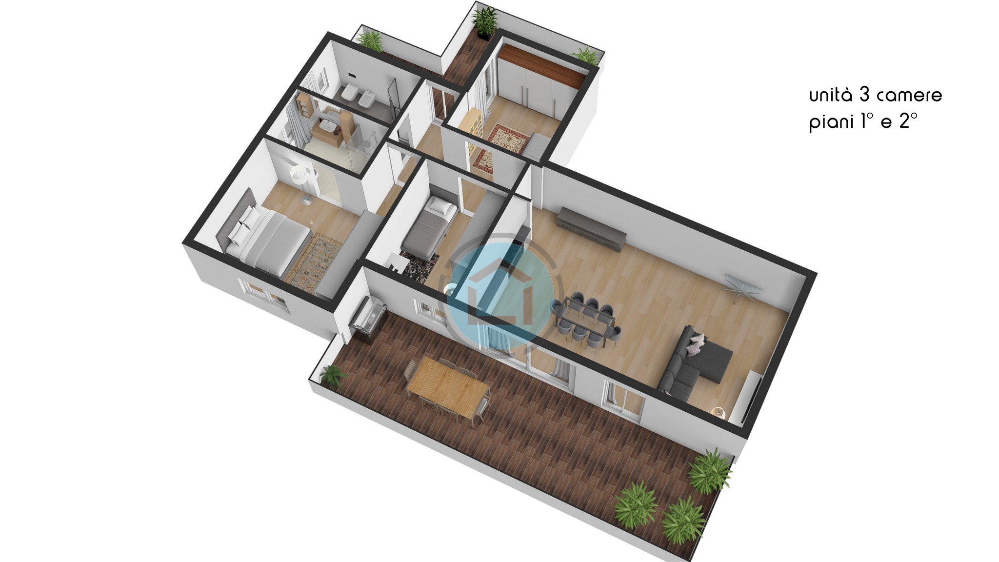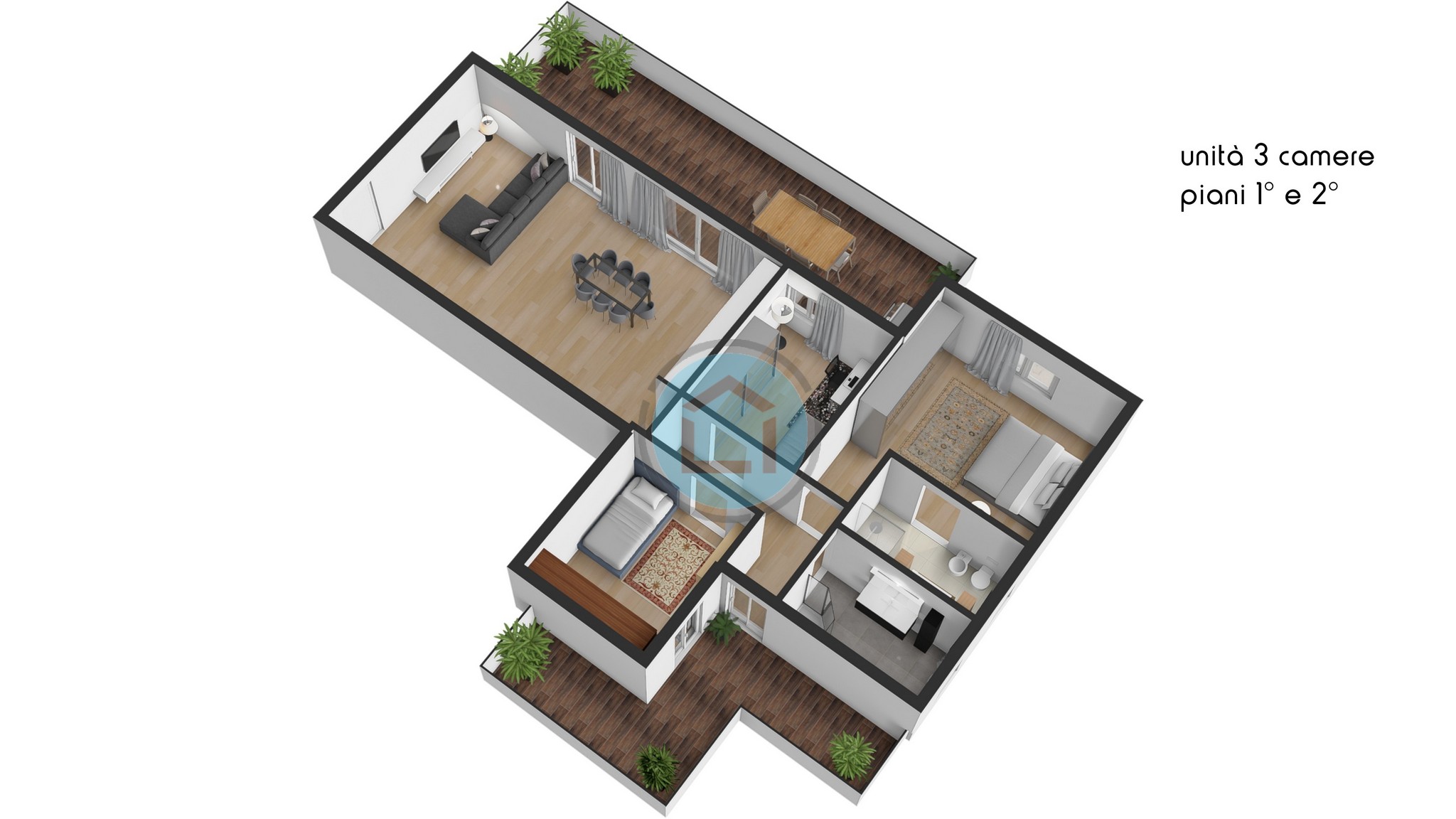 Ai piani superiori: ampi terrazzi vivibili, perfetti per momenti di relax all’aperto